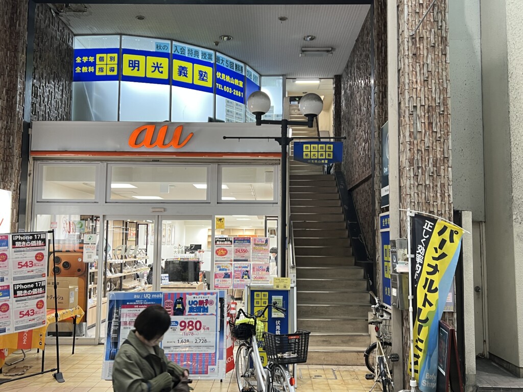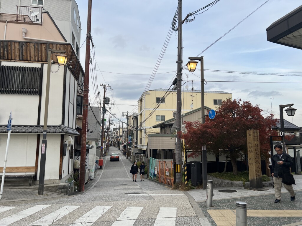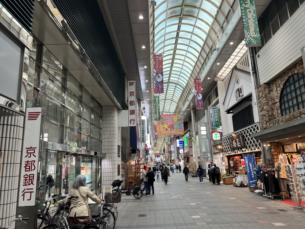 左手に京都銀行が見えてきたらもうすぐです。奥に見えるセブンイレブンの向かいがお店です。