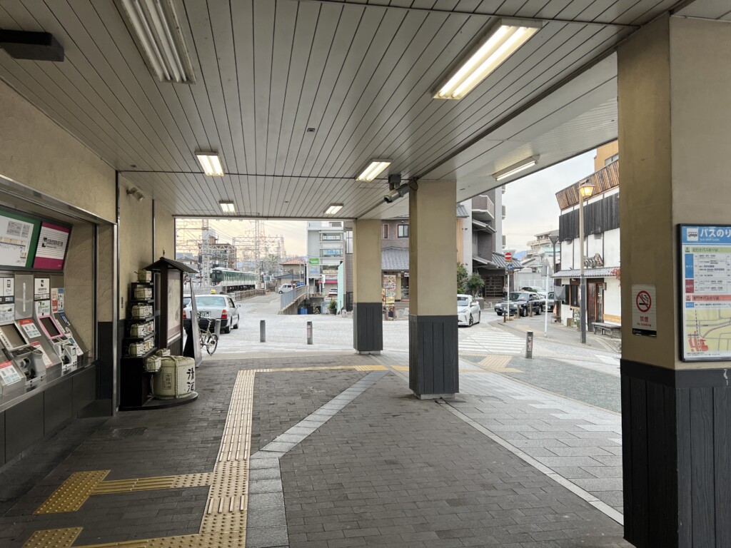 京阪本線中書島駅北改札口を出て、右手に曲がってください。
