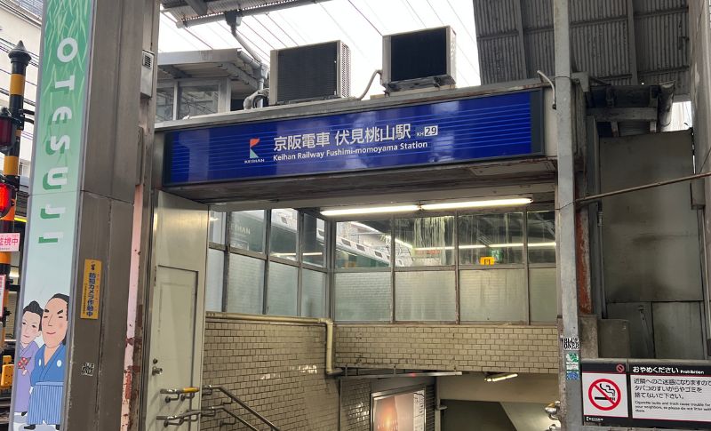 京阪伏見桃山駅の改札を出て、左手の階段を上がってください。