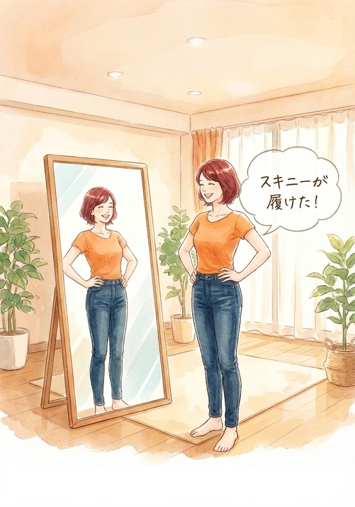 若い頃のスキニーがスルッと履けて、本当に嬉しいです。食事制限も無理なく続けられました。