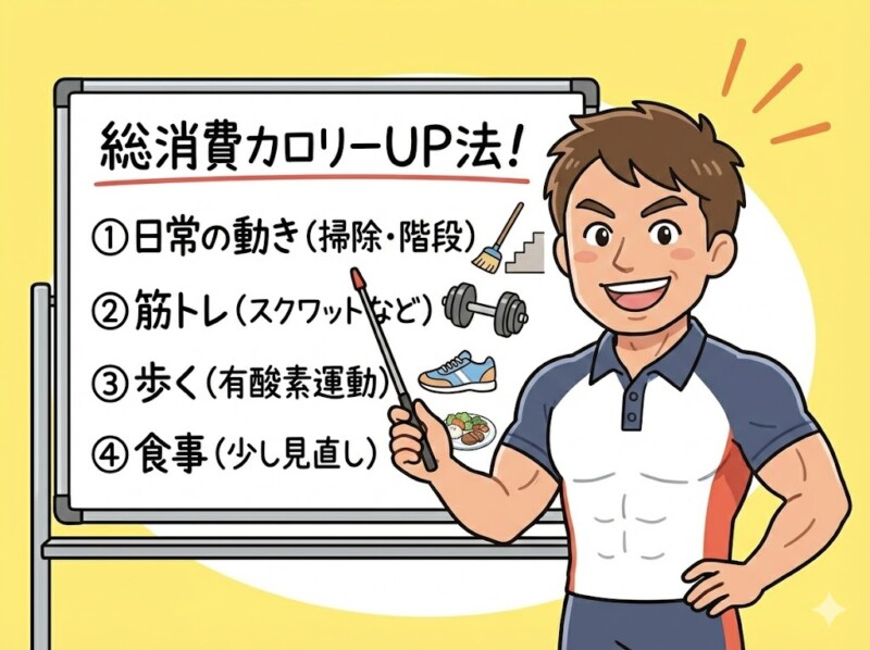 そこで今回は、脂肪を減らすために重要な「総消費カロリー(TDEE)」を増やす方法を、 科学的に外しにくいポイントに絞って、初心者にもわかる形で整理します。